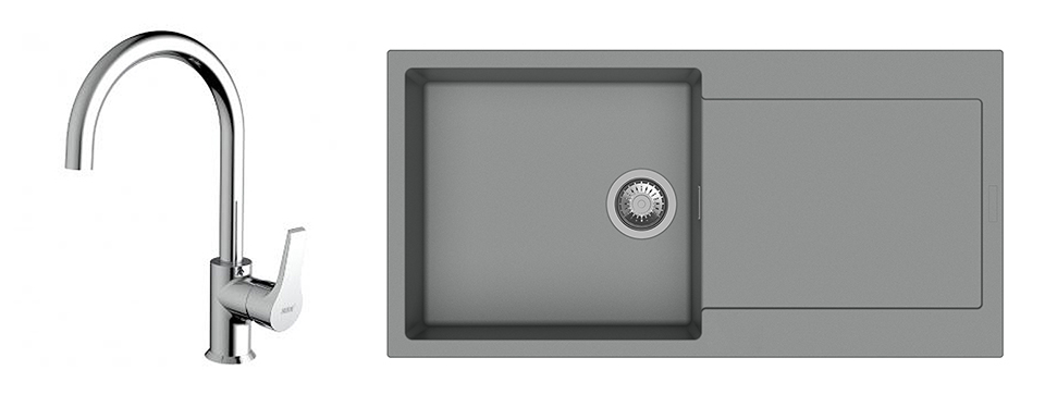 StrongSinks S3 Set Sink Zala 1000 1000x500mm granite gray + tap Rhona chrome