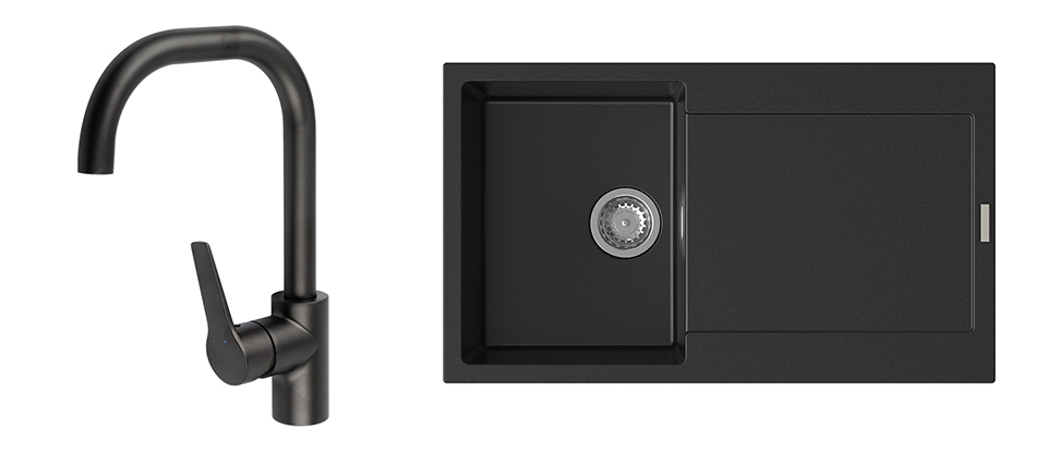StrongSinks S3 Set Sink Zala 860 860x500mm granite black + tap Garonne black