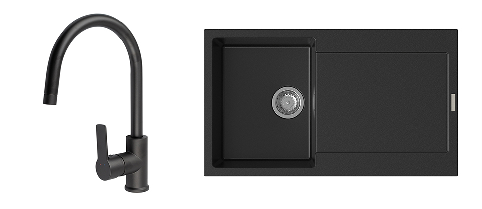 StrongSinks S3 Set Sink Zala 860 860x500mm granite black + tap Loira black