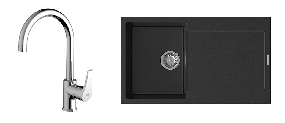 StrongSinks S3 Set Sink Zala 860 860x500mm granite black + tap Rhona chrome