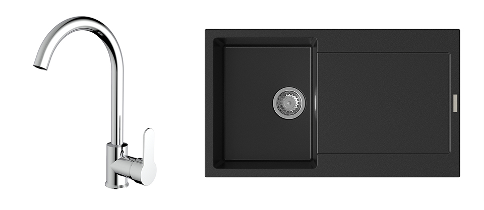 StrongSinks S3 Set Sink Zala 860 860x500mm granite black + tap Seina chrome