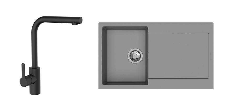 StrongSinks S3 Set Sink Zala 860 860x500mm granite gray + tap Ipoly black