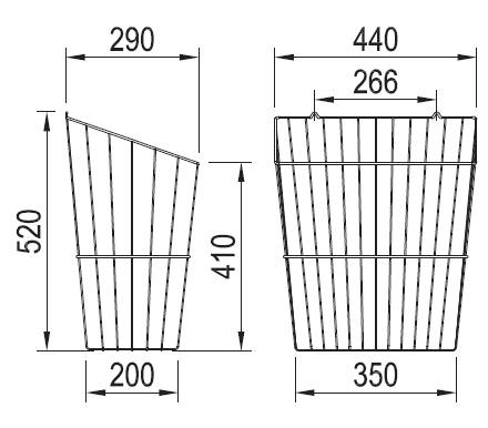 Laundry basket, white color,height 520 mm, width 440 mm, depth290 mm. Basket includes holder to the doors.