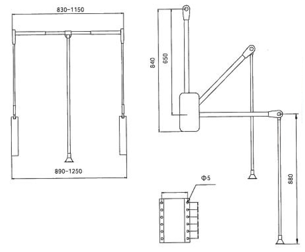 Tiltable wardrobe rod for inner clearance of the cabinet 860-1200 mm. Load capacity 10kg. Surface silver/alu.
