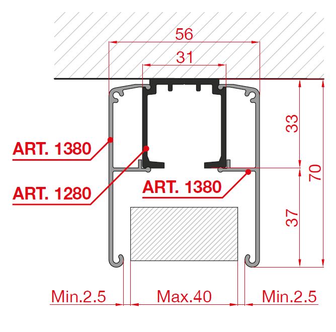 TERNO interior sliding door 40-120kg, cover profile silver 1380/A/S 2m