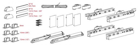 fittings set for glass doors with synchronous opening. Glass thickness 8 -12.7mm.