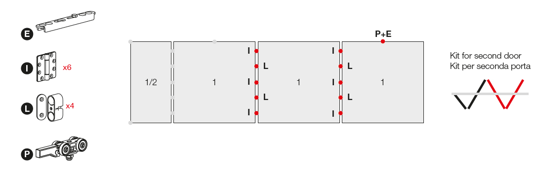 Fittings and complementary material Door fittings Interior Folding doors TERNO Versatile sada,posuvné dvojkřídlo,(30)40kg,závěsy+magnety,2400mm,černá
