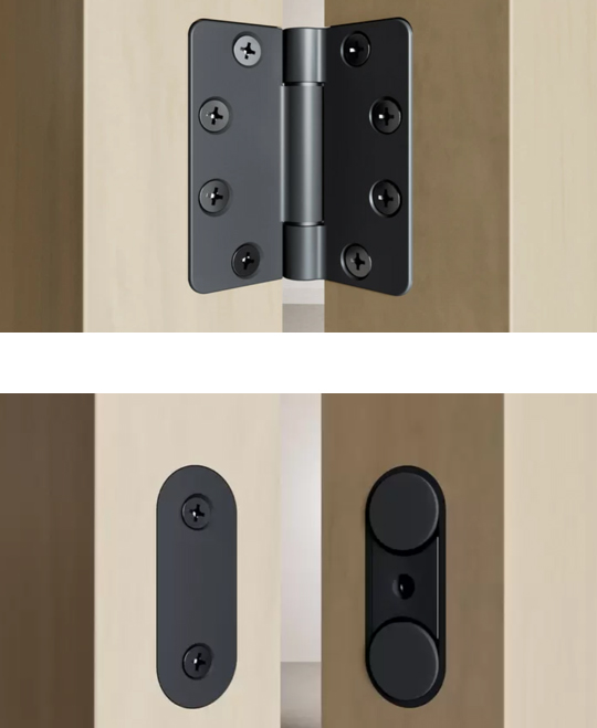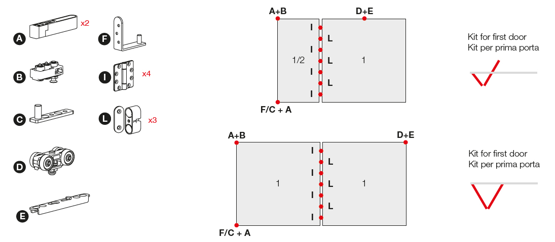 Sada kování pro dvě křídla s mezidveřními závěsy (4 ks) a magnetickou aretací ( 3 ks). Verze bez spodního vedení. Pro výšku dveří 2400 - 3000mm, nosnost 80kg/1 křídlo. V případě čtyř dveří - 40kg/1 křídlo, šesti dveří - 25 - 30kg/1 křídlo.Tloušťka materiálu 35 - 45mm. Barva černá (práškově lakovaná).