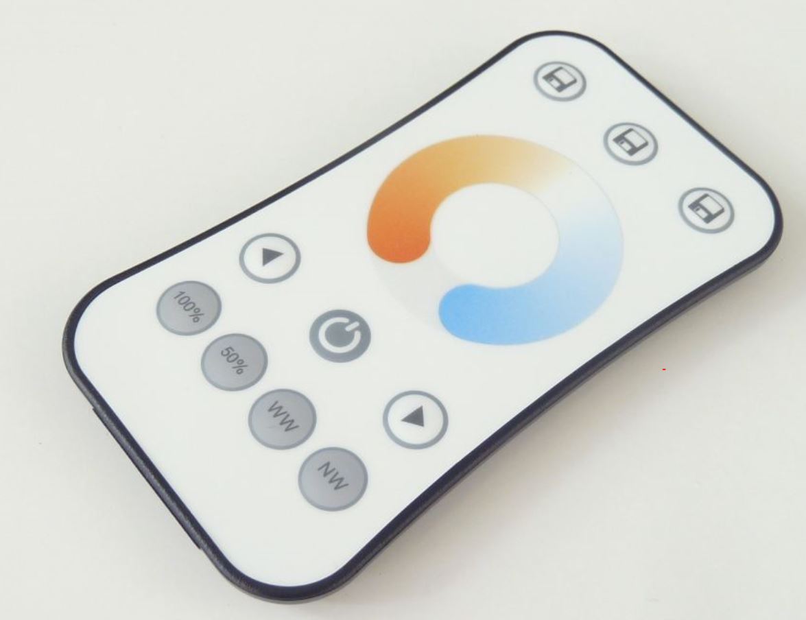 Radio frequency controller and receiver set for LED products, direct line of sight to the receiver is not required. LED driver with PWM control technology designed for CCT two-color tapes, used to turn on, turn off, regulate intensity and possibly start light effects. Multiple receivers for each preset can be paired to one controller. A maximum of 2 controllers can be paired to 1 receiver. Since this is an electronic device with radio frequency control, it may happen that the controller with the receiver gets out of tune. This can be caused by e.g. static electricity, radio frequency interference, deviation in the power supply. If your controller has stopped responding, it is necessary to pair it with the receiver according to the instructions.
