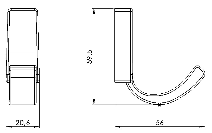 Metal hook, front moounting Pitch:20mm Width: 20,5mm Height: 59mm