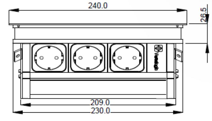 Kompletní kancelářský systém s 3 el. zásuvkami, včetně hliníkové průchodky 240x120 mm a uchycení, který se obvykle umisťuje do pracovní plochy stolu .