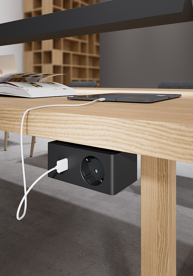 Thanks to its minimalist design, VersaQ is easily integrated into a wide range of environments, such as offices, desks, home offices, or hotels.