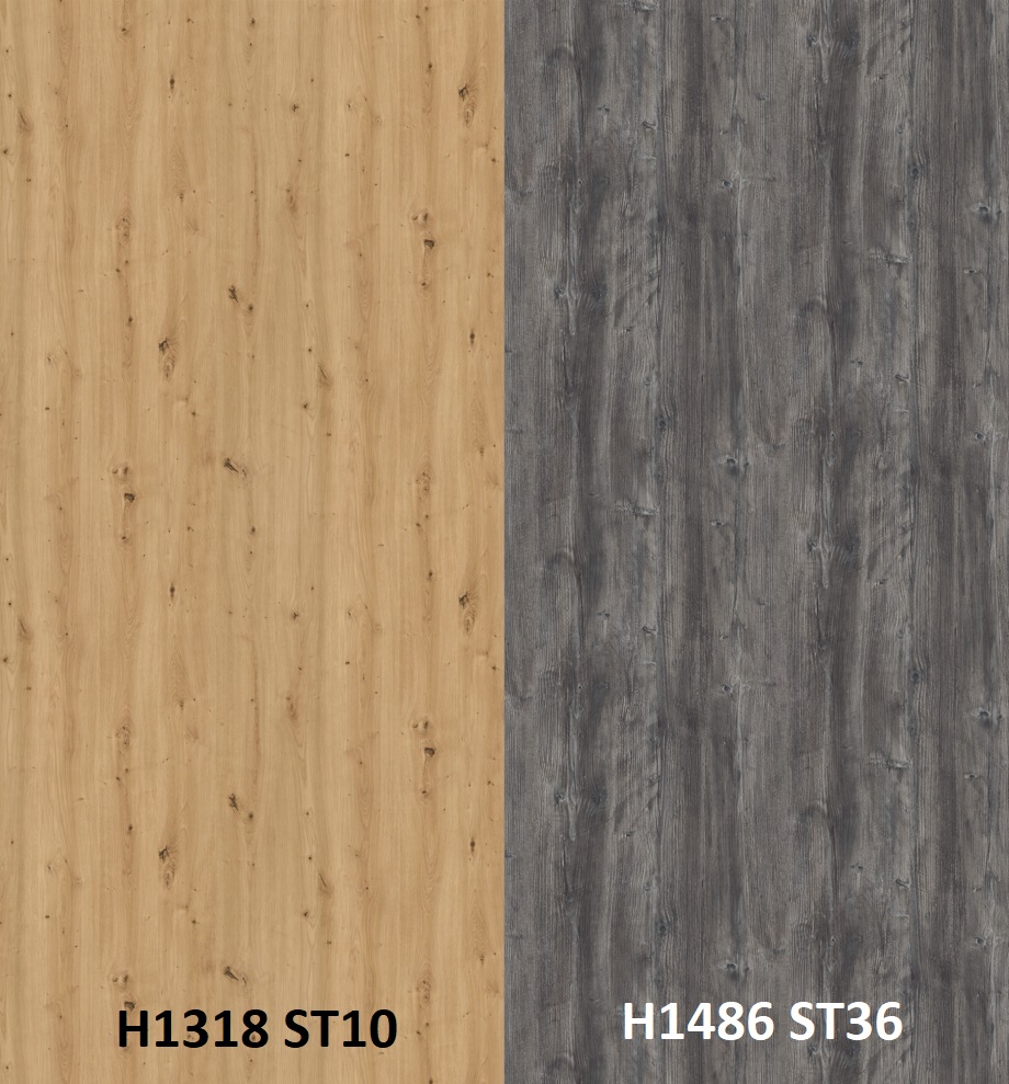 Zádové desky jsou dřevotřískové desky oboustranně potažené laminátem. Z každé strany mají jiný dekor.